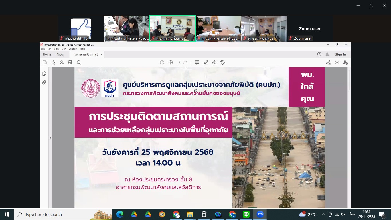 การประชุมติดตามสถานการณ์และการช่วยเหลือกลุ่มเปราะบางในพื้นที่อุทกภัย